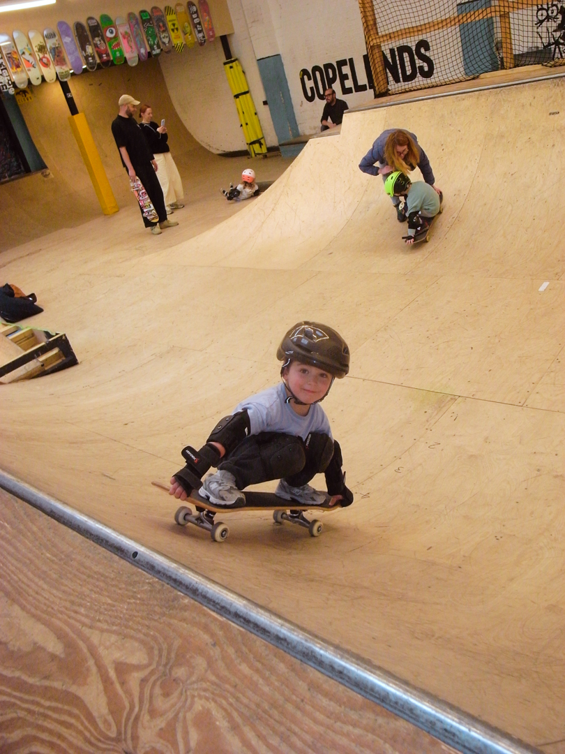 We show you the basic skills to work on with smaller children, and how to support your child while learning those skills. Essentially we teach you, the parent, some basic skate coaching skills.